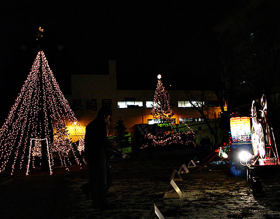 | 中島向陽公園(長崎屋中島店裏)で12月19日より光のオブジェの点灯がされてました。 |