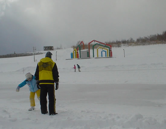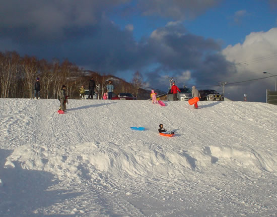| ダンパラのスケートリンク横とダンパラスキー場内とソリで滑ってました。 |