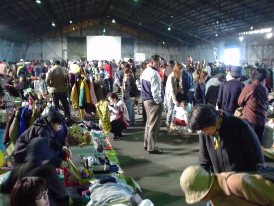 | シーサイドフェアー会場の倉庫ないでフリーマーケットが開催されてました。 |